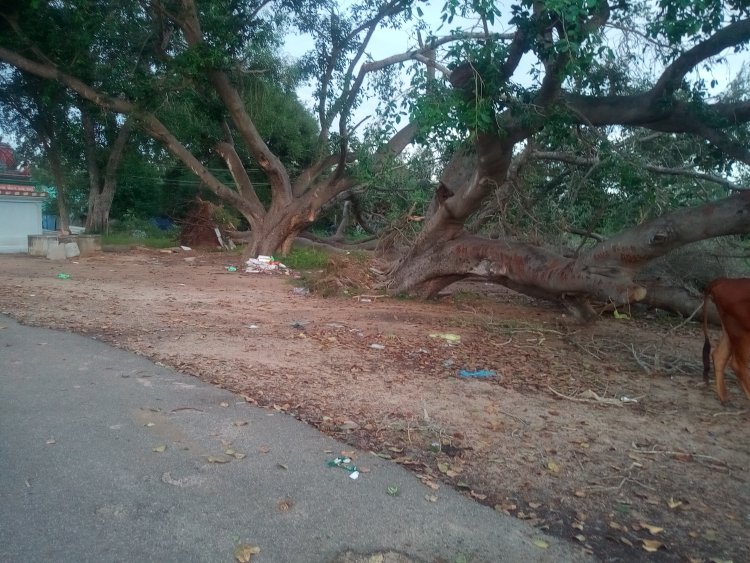 புதுக்கோட்டையில் வேருடன் சாய்ந்த ஆலமரம், பொதுமக்கள் வேதனை!