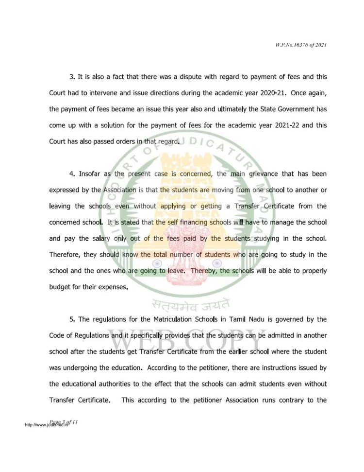 கல்வி நிறுவனங்கள் கல்வி கட்டணம் வசூலிக்க உரிமை உள்ளது. ஆனால் அதற்காக மாணவர்களின் கல்விச் சான்றிதழ்களை பிடித்து வைத்து வழங்க மறுப்பது சட்டபூர்வமானது அல்ல. மாணவர்களின் கல்விச் சான்றிதழ்கள் அவர்களின் அடிப்படை கல்வி உரிமைக்கு சம்பந்தப்பட்டவை.