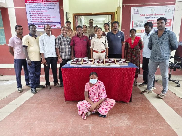 புதுக்கோட்டையில் காவலர் வீட்டில் திருடப்பட்ட 35 சவரன் நகைகளை மீட்டு திருட்டு சம்பவத்தில் ஈடுபட்ட வட மாநில பெண்ணையும் 48 மணி நேரத்தில் கைது செய்த புதுக்கோட்டை நகர காவல்துறையினர்!