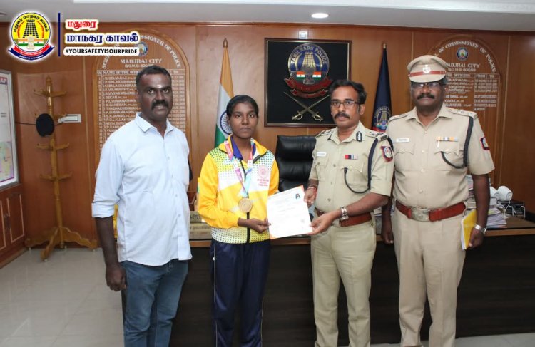 தங்கம் வென்ற தலைமை காவலரின் புதல்வி.உமையாழினி மாநகர காவல் ஆணையர் திரு.ஜெ.லோகநாதன் அவர்களின் பாராட்டுக்கள்.