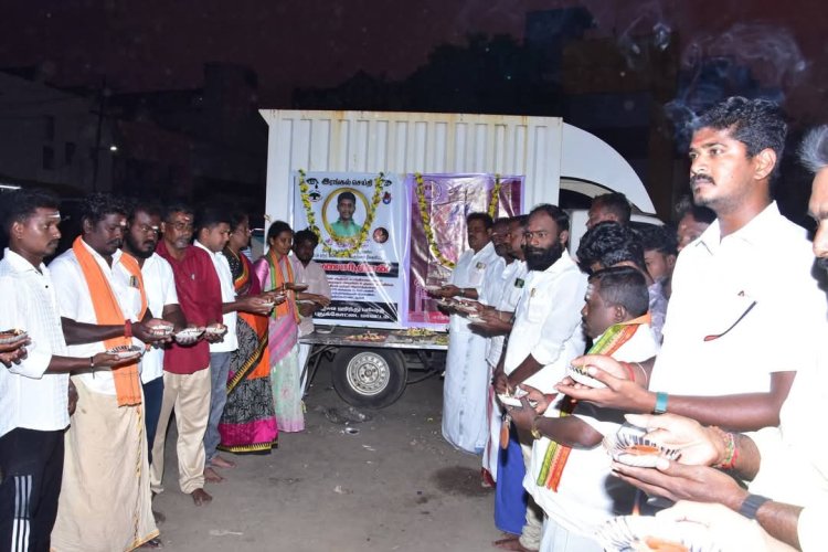 திரு. பூர்ணசந்திரன் அவர்கள் தன்னையே தீபமாக்கி உள்ளார். அவரின் ஆன்மா மோட்சம் அடைய வேண்டி, அது இன்று மாலை புதுக்கோட்டையில் அனைத்து இந்து பரிவார அமைப்புகள், புதுக்கோட்டை நகர இந்து முன்னணி மற்றும் விஷ்வ இந்து பரிசத் அமைப்பின் சார்பில் நடைபெற்ற மோட்சத் தீப நிகழ்ச்சியில் நிர்வாகிகள் மற்றும் பொதுமக்கள் கலந்து கொண்டனர்.