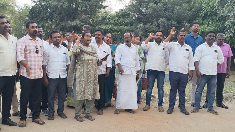 சிவகாசி அருகே ஈஞ்சார் கிராமத்தில், வசிப்பிடச் சான்றிதழ் வழங்கக் கோரி ஏற்பட்ட தகராறில், கிராம நிர்வாக அலுவலர் மற்றும் கிராம உதவியாளர் மீது திமுக தெற்கு ஒன்றிய துணை அமைப்பாளர் கூடலிங்கம் மற்றும் அவரது மகன் வெயிலுமுத்து ஆகியோர் தாக்குதல் நடத்தியதாக புகார் எழுந்துள்ளது. இதை கண்டித்து புதுக்கோட்டை மாவட்ட கிராம உதவியாளர்கள் சங்கம் சார்பில் புதுக்கோட்டை வட்டாட்சியர் வளாகத்தில் கண்டன ஆர்ப்பாட்டம் நடைபெற்றது. அப்போது, கண்மூடித்தனமாக தாக்கிய கூடலிங்கத்தை உடனடியாக கைது செய்ய வேண்டும், கிராம நிர்வாக அலுவலருக்கும் அலுவலக உதவியாளர்களாக பணி புரியும் ஊழியர்களுக்கும் தகுந்த பாதுகாப்பு வழங்க வேண்டும் என வலியுறுத்தி முழக்கம் எழுப்பப்பட்டது. இதில் 30க்கும் மேற்பட்டோர் கலந்து கொண்டு தங்கள் எதிர்ப்பை பதிவு செய்தனர்.