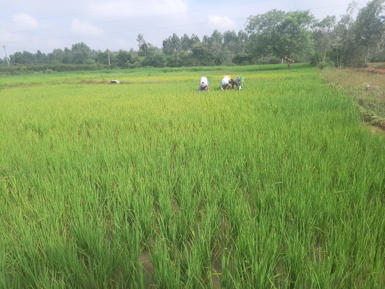 பத்திரிகையாளர் வீரராகவன் வயல்களில் நெற்பயிற்களுக்கு தாலாட்டு பாடல்களுடன் களைபறிக்கும் பெண்கள்