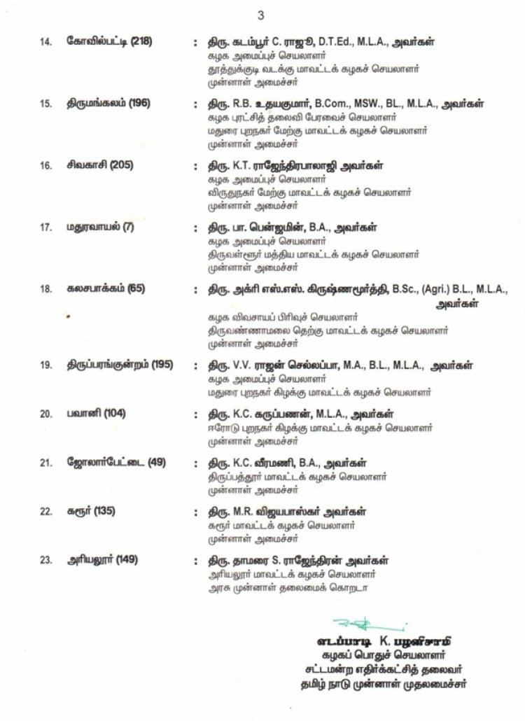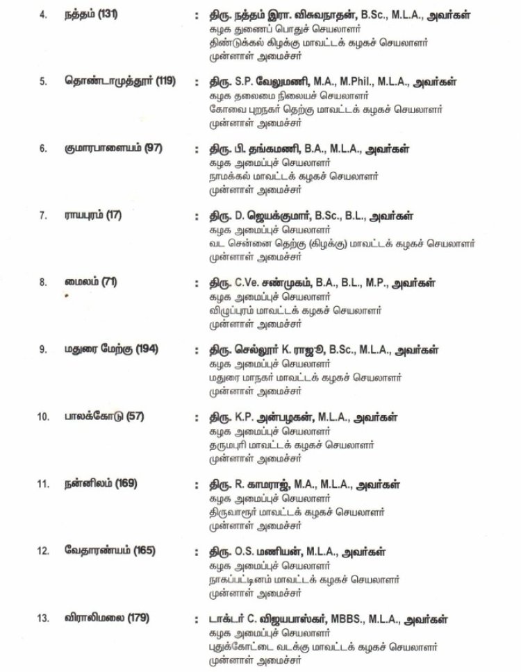 அனைத்திந்திய அண்ணா திராவிட முன்னேற்றக் கழகம் (AIADMK) தலைமைக் கழக அறிவிப்பு 2026 தமிழ்நாடு சட்டமன்றப் பொதுத்தேர்தலுக்கான அதிமுக வேட்பாளர்களின் முதல் பட்டியல்